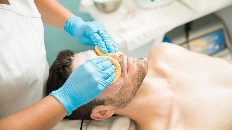 Auf die Bedürfnisse der Männerhaut abgestimmte Gesichtsreinigung. Preis pro Person.