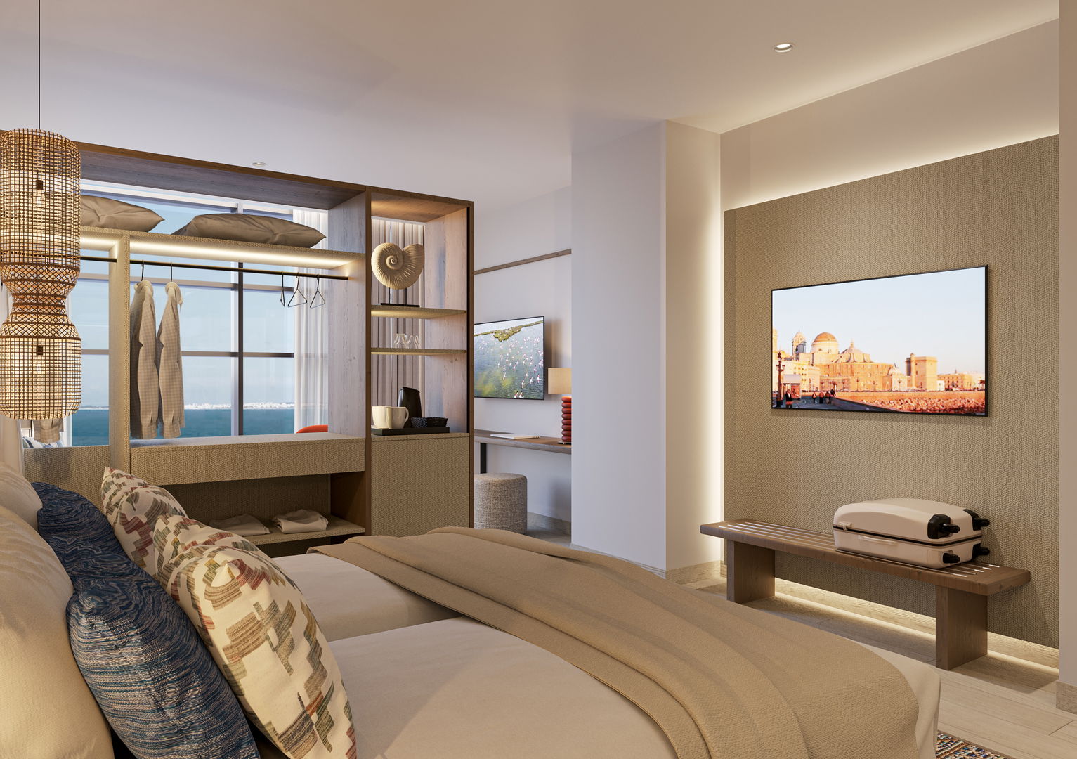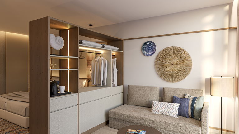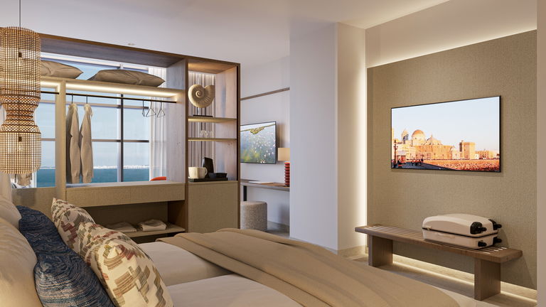Amplia y elegante Junior Suite diseñada para disfrutar de una estancia superior. Un espacio luminoso con zona de descanso y trabajo, cuidada decoración y todo el confort necesario para relajarte y desconectar con estilo.