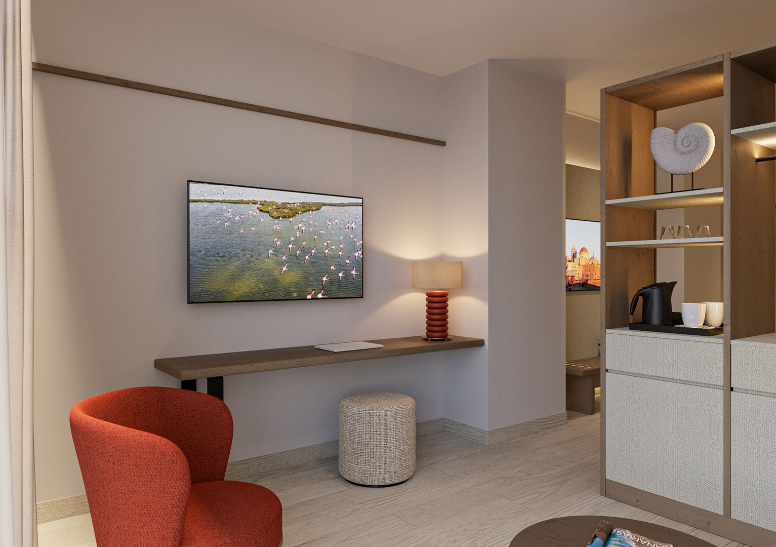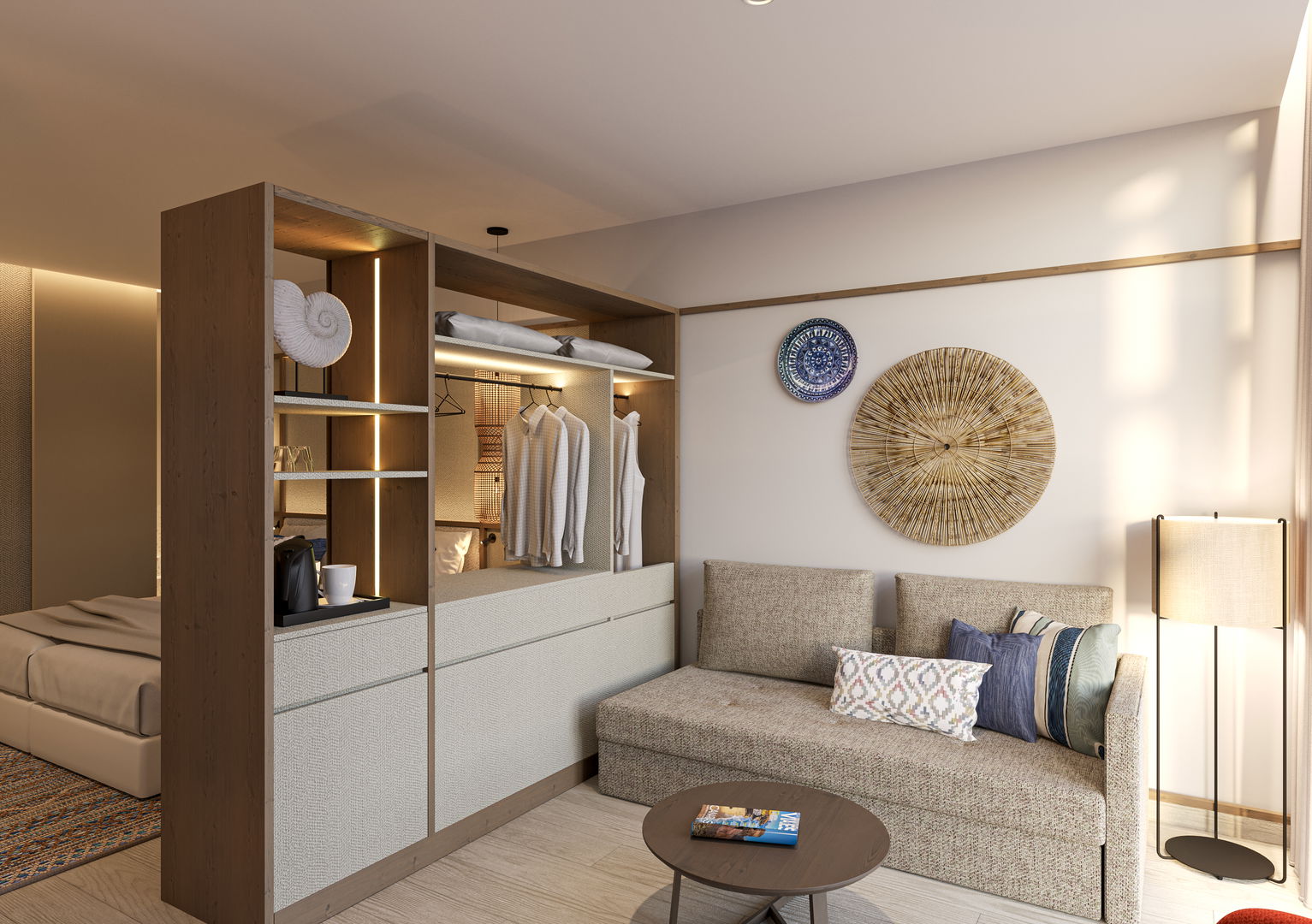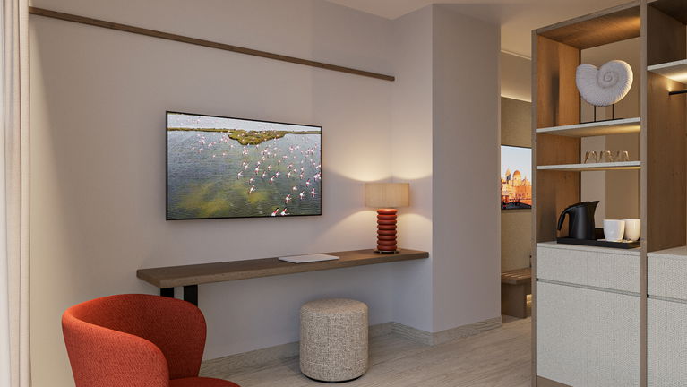 Amplia y elegante Junior Suite ideal para familias. Un espacio luminoso y confortable que cuenta con una zona pensada para los más peques, donde podrán disfrutar y divertirse, además de un ambiente acogedor con todo el confort necesario para vivir una estancia especial en familia.