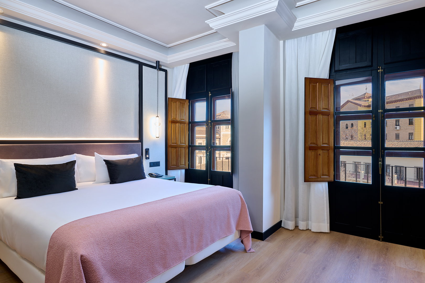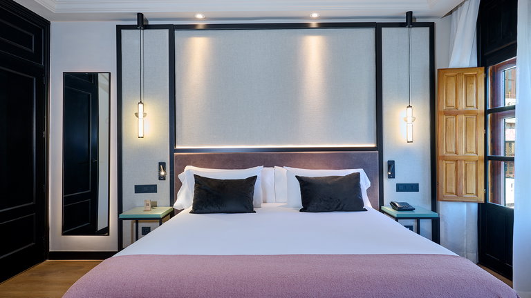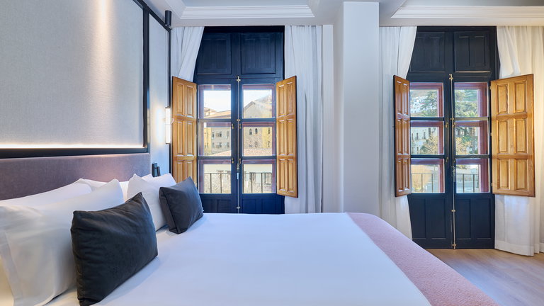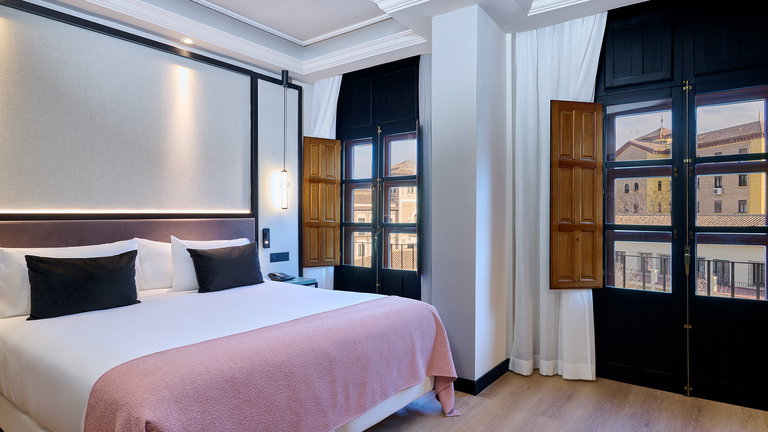 Alliant élégance contemporaine et charme authentique, nos chambres Deluxe Puerta Elvira créent l'ambiance idéale pour se connecter à l'essence de Grenade. Depuis leur balcon lumineux, vous pourrez profiter d'une vue privilégiée sur la historique Puerta de Elvira, ancienne porte d'entrée de la ville et accès à l'Albaicín
