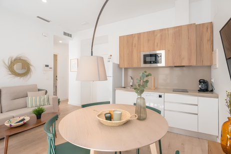 Parmi les équipements, vous trouverez la climatisation et le chauffage, le Wi-Fi gratuit, une télévision à écran plat, un coin salon avec canapé, le linge de lit et les serviettes, des produits de nettoyage, des prises près du lit et un porte-manteau. L'appartement se trouve dans un immeuble calme, dispose d'un accès indépendant, est situé à un étage élevé et est desservi par un ascenseur.