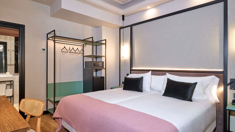Con un'atmosfera intima e accogliente, questa camera offre il riposo perfetto a chi cerca tranquillità. È stata progettata con cura per valorizzare ogni dettaglio e garantire un soggiorno confortevole. Può essere predisposta con un letto matrimoniale o con due letti singoli.