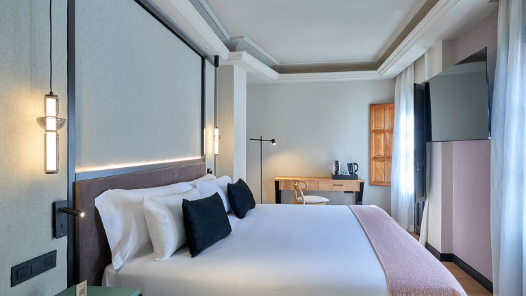 La camera Deluxe offre uno spazio ampio e sofisticato, progettato per chi cerca un livello superiore di comfort. Il suo letto king size, di grande morbidezza e qualità, invita a un riposo eccezionale in un'atmosfera rilassante ed esclusiva.
